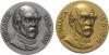| Lot von 2 Kupfer-Klischees Barhäuptige Büste in Zivil mit Kragenansatz, Umschrift BISMARCK 1815-1898. a) vergoldet 31,0mm 2,4g | b) versilbert 30,8mm 1,54g. st |