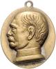 | Lot von 3 Stücken: a) Tragbares Abzeichen in Form einer Schleife des Knappenvereins St. Franziskus in Bismarck (Stadtteil in Gelsenkirchen), mit Nadel, Messingblech vergoldet und versilbert 52,7x33,2mm 6,23g | b) Tragbare ovale Messingmedaille o.J. auf seinen politischen Werdegang, barhäuptige Büste mit Kragen nach links, im Abschnitt M.S. / Inschrift AMTSANTRITT 1835 - BUNDESTAG 1851 - MINISTER 1862 - BUNDESKANZLER 1867 - FÜRST U. REICHSKANZLER 1871 30,0x33,5mm 14,83g | c) Tragbarer Anhänger in Form seiner barhäuptigen Büste in Uniform nach rechts / Inschrift OTTO VON BISMARCK 1815-1898 ca. 23,0x30,0mm 9,57g. vz |