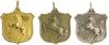 - Sport Lot o.J. von 3 Prämienplaketten des Pferdesports: 1x Bronze mit Gravur Lovendegem 10.5.61, 1x Bronze versilbert mit Gravur Buggenhout 14.6.64 und 1x Bronze vergoldet mit Gravur Herfelingen 28.6.64 alle mit Orig.- Öse u. Ring ca. 32,6x35,4mm 12,7-14,8g ss und besser | 40,00 € |
